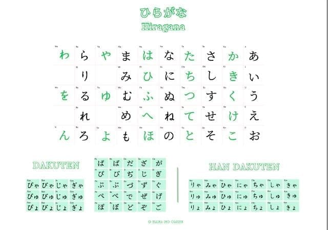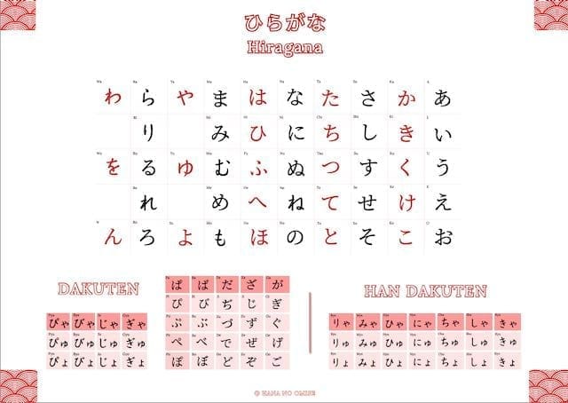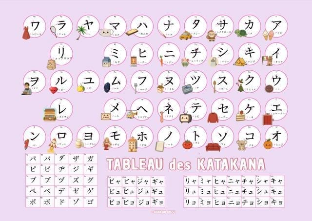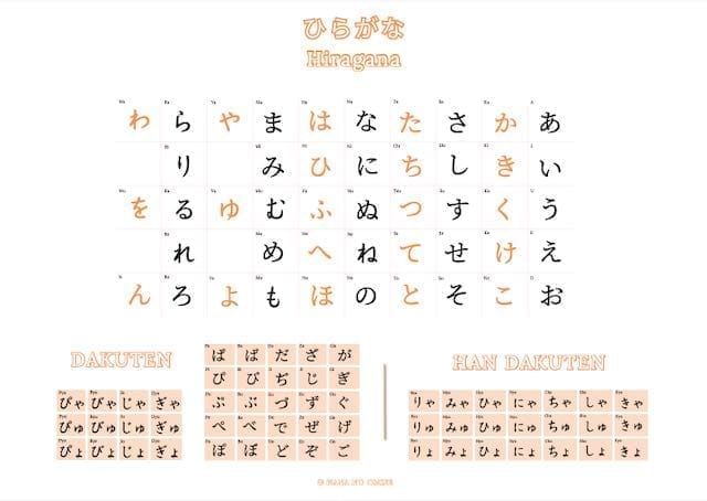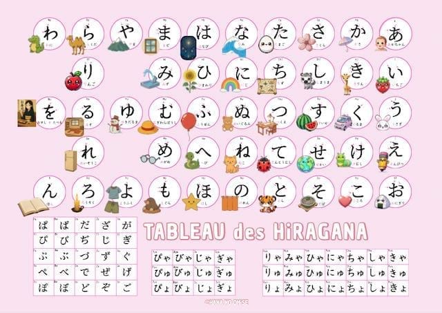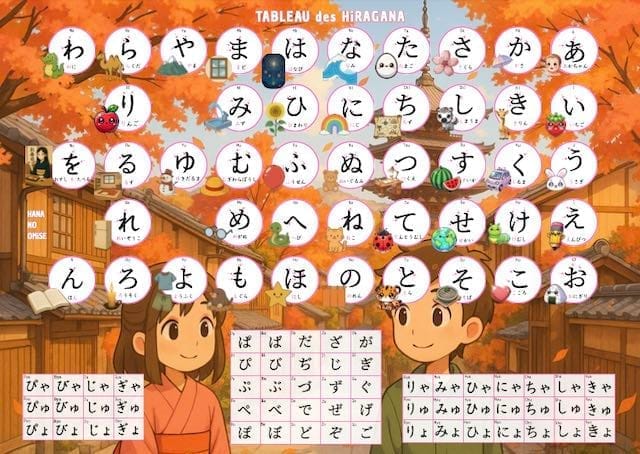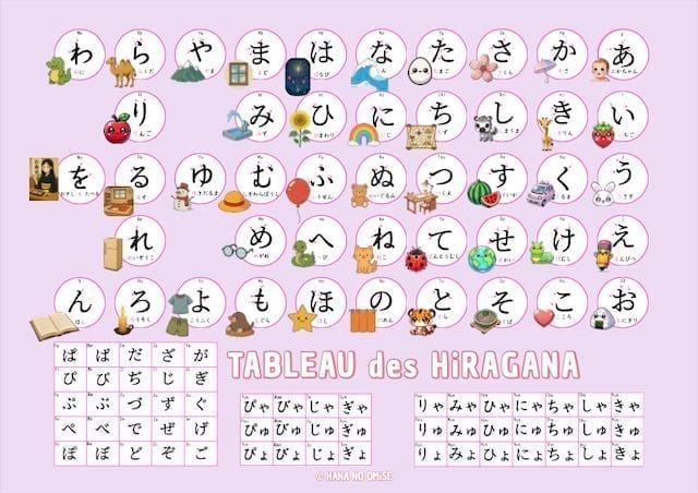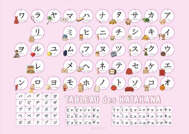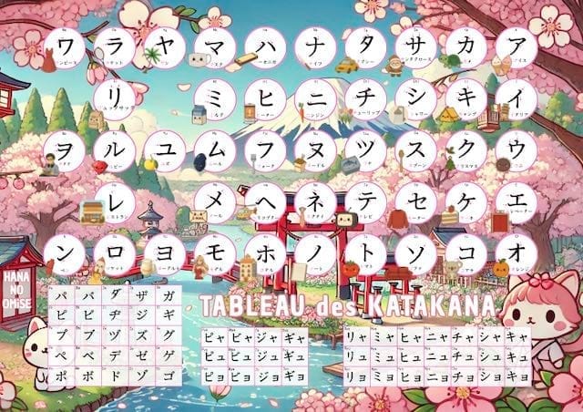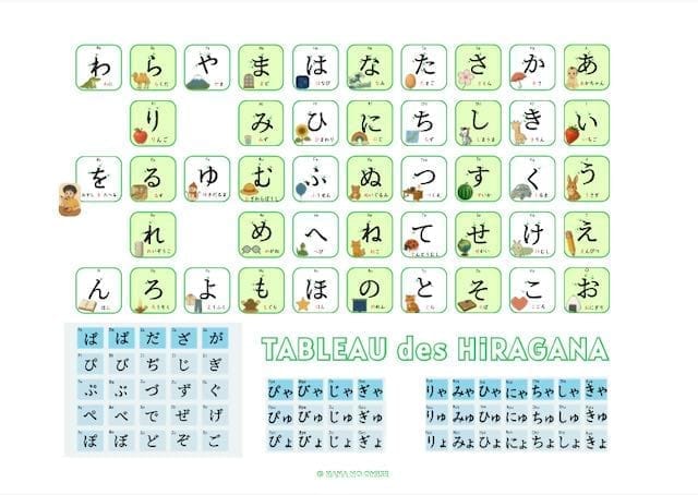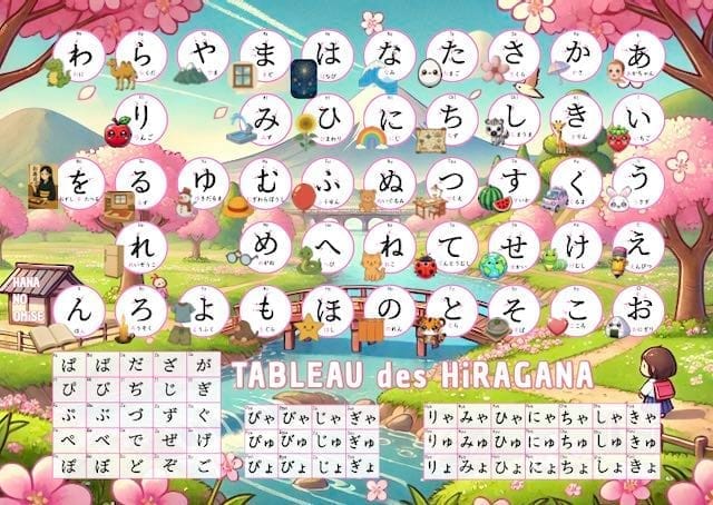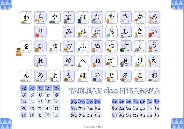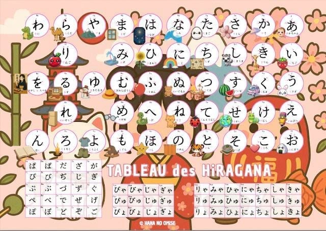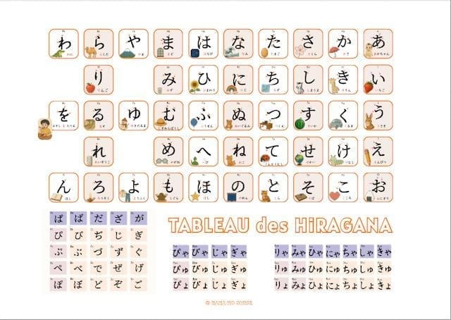 Nous avons créé pour vous des tableaux pédagogiques et esthétiques qui rassemblent l’ensemble des 46 Hiragana et des Katakana avec les dakuten et handakuten associés.