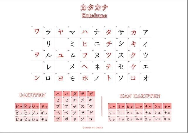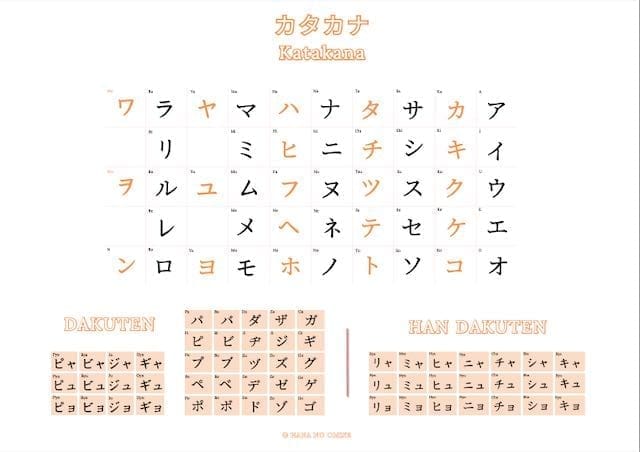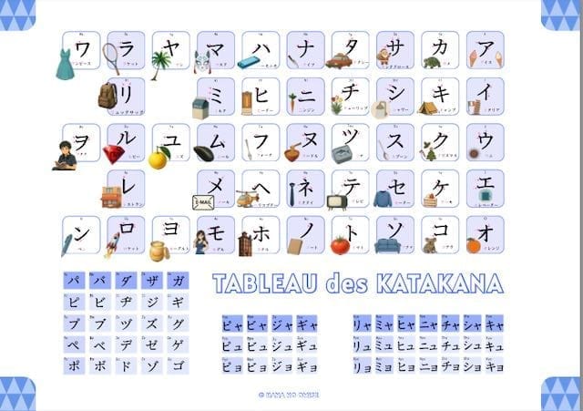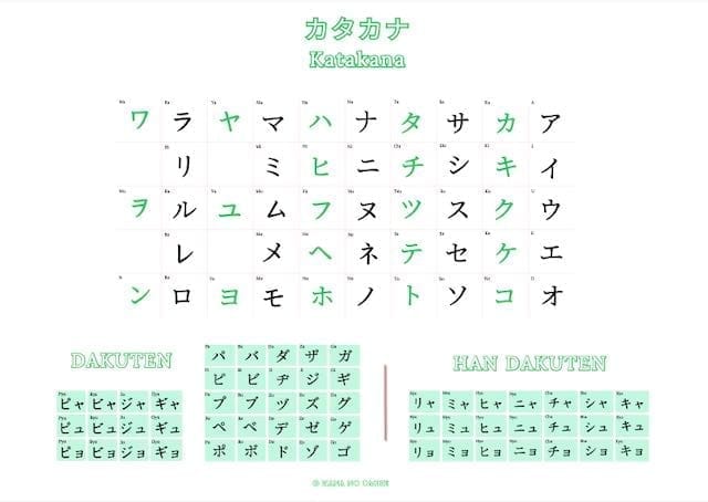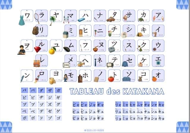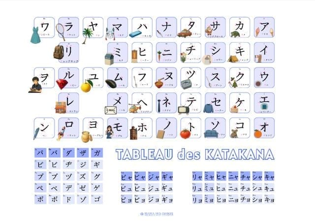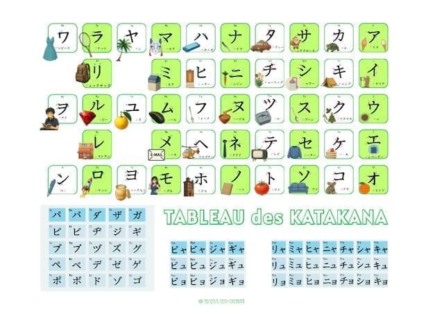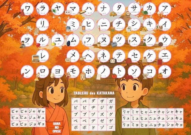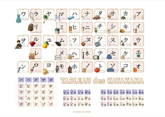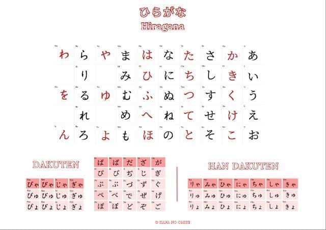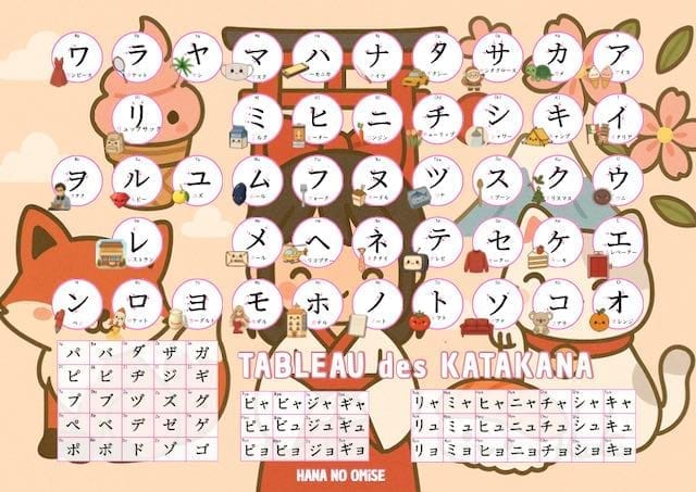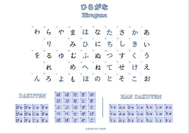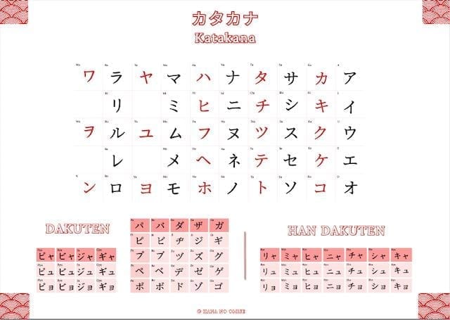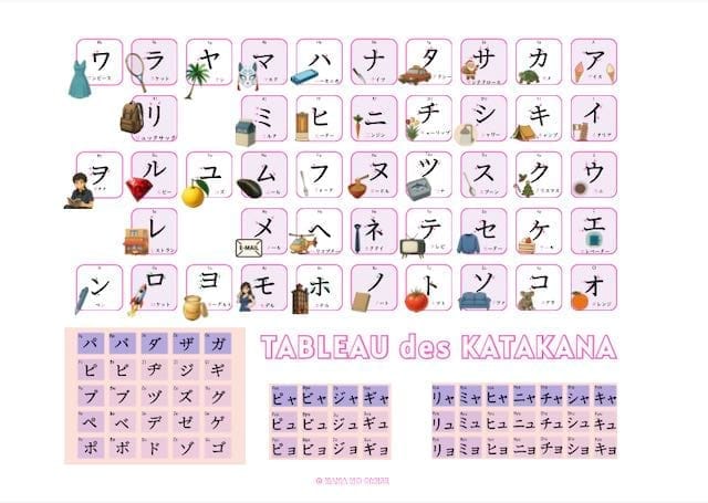 Nous avons créé pour vous des tableaux pédagogiques et esthétiques qui rassemblent l’ensemble des 46 Hiragana et des Katakana avec les dakuten et handakuten associés.